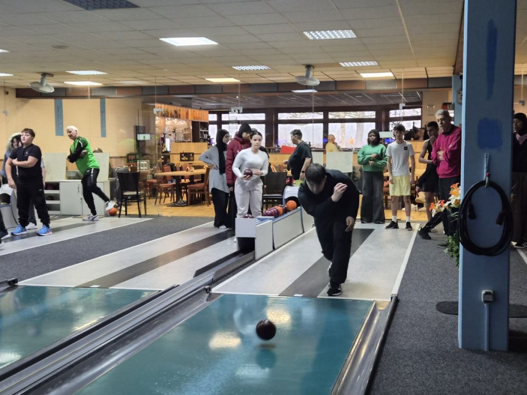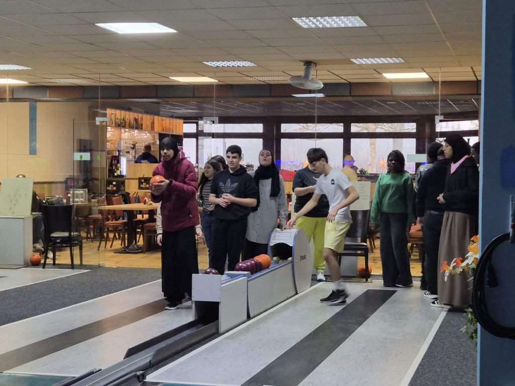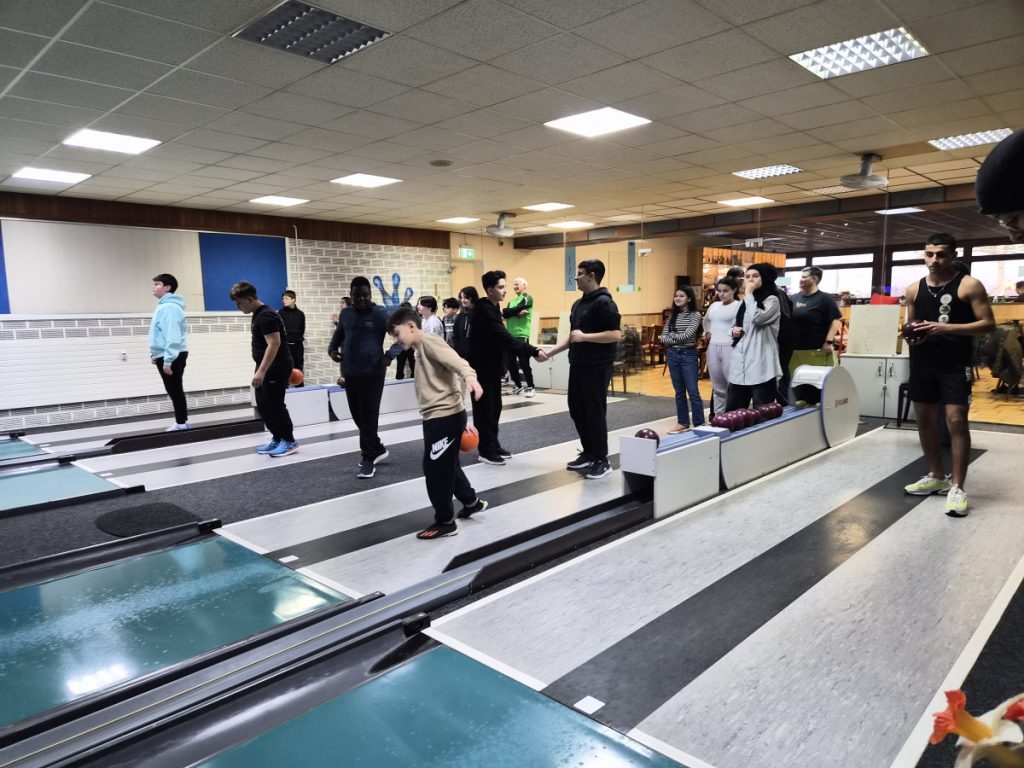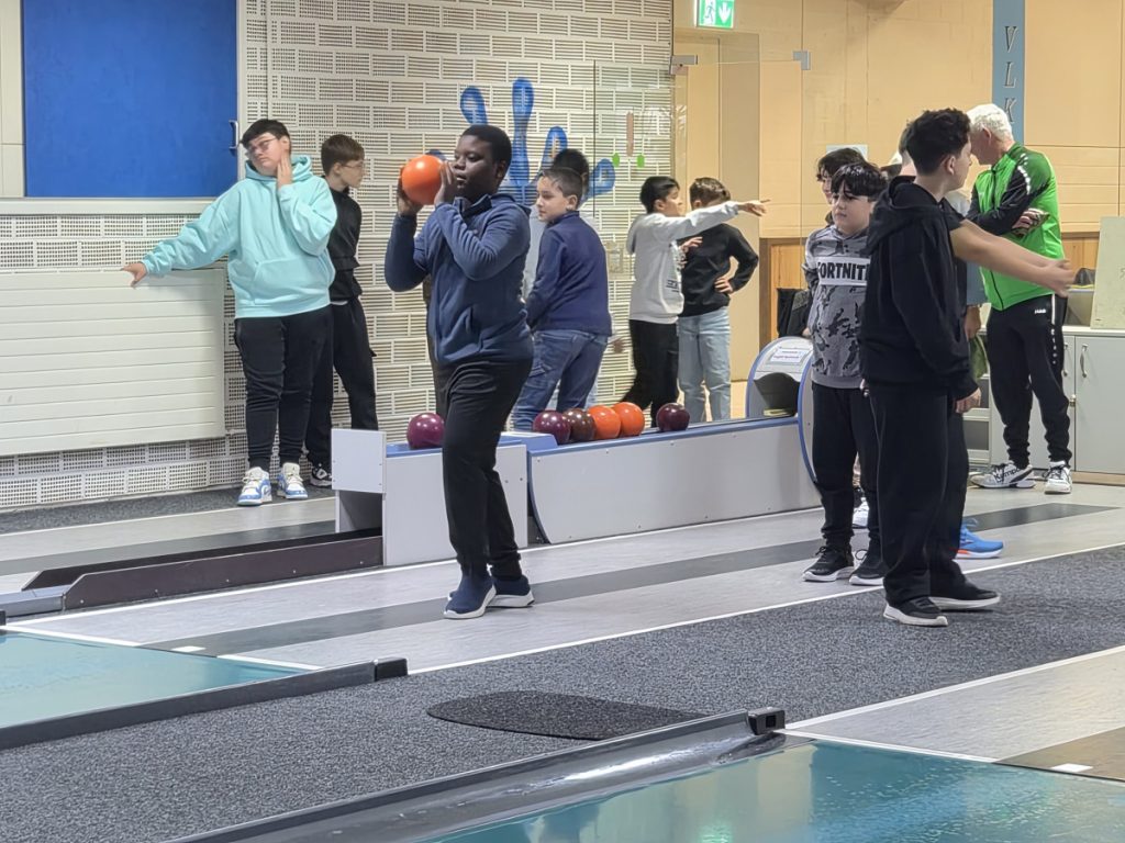 Wieder einmal hatten die Schülerinnen und Schüler des IK-Jahrgangs sehr viel Spaß an Bewegung und am Wettkampf in der Kegelhalle in Lampertheim. Am Dienstag, den 16.12.2025 besuchte der ganze Jahrgang unserer Sprachintensivklassen das „VLK – Verein Lampertheimer Kegler“. Die Klassen wurden auf vier Bahnen aufgeteilt und traten gegeneinander an. Vielen Dank an die Mitglieder und Organisatoren des Kegelvereins, die extra für uns Schulklassen ehrenamtlich für einen kleinen Unkostenbeitrag die Kegelhalle geöffnet haben.