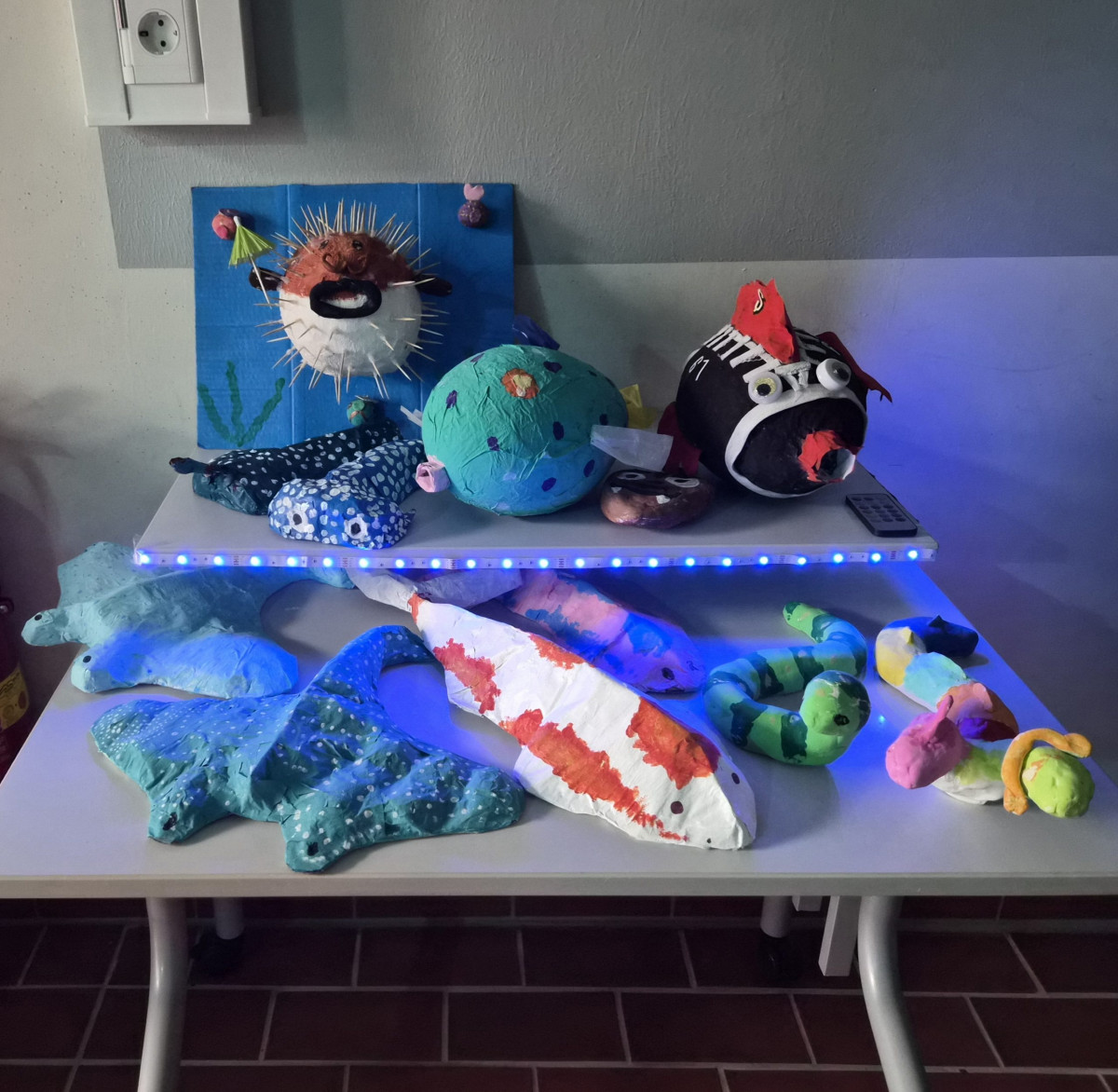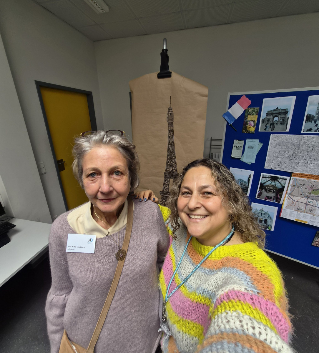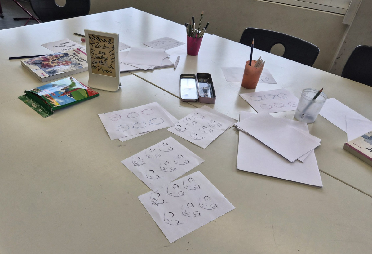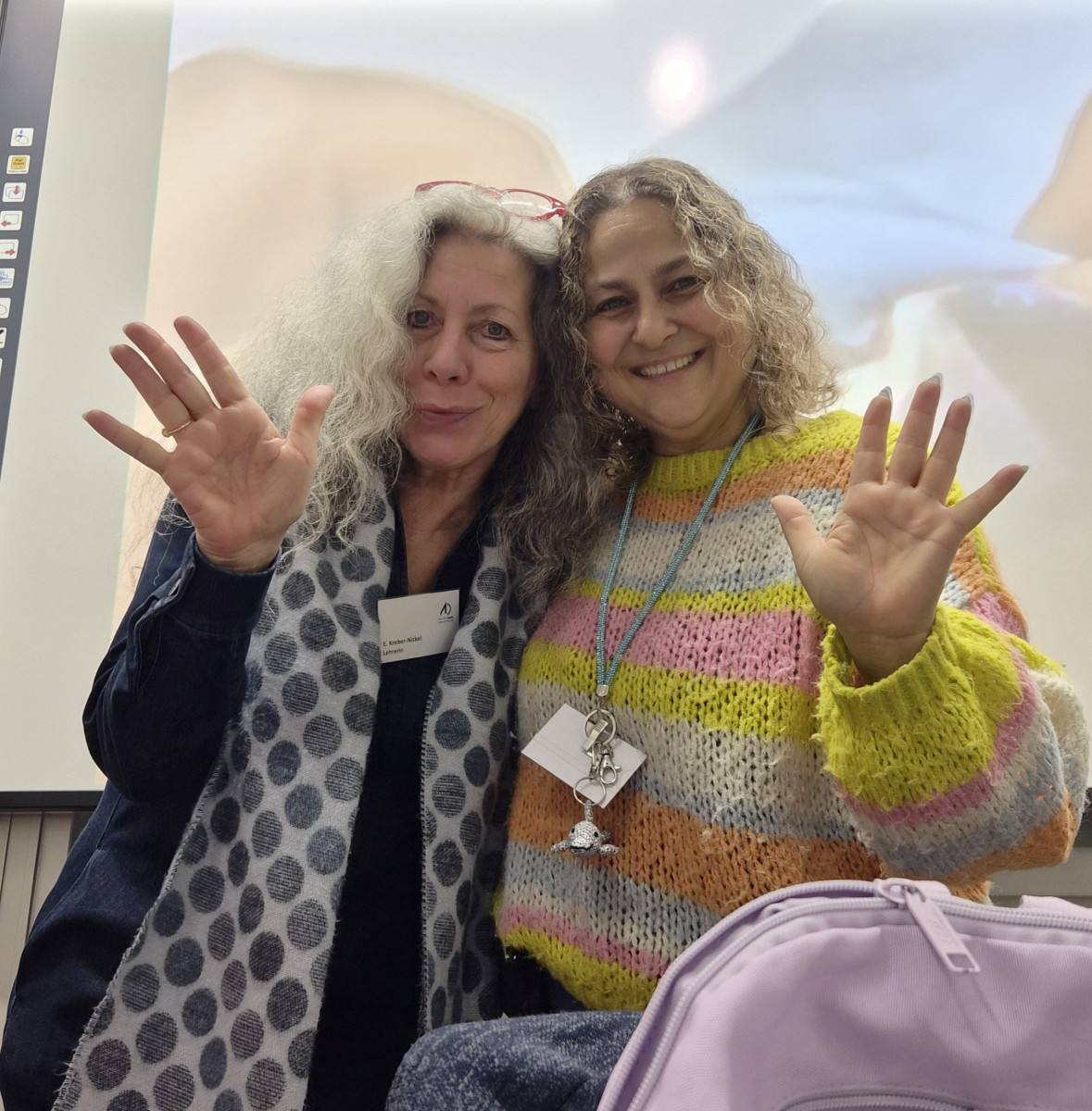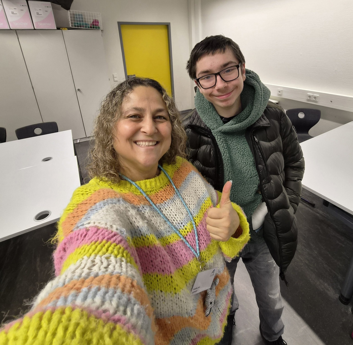 Im Fachbereich Arbeitslehre besuchten am Tag der offenen Tür zahlreiche Viertklässler mit ihren Eltern unter anderem den Textilraum. Nicht nur bestaunten sie die Exponate, die zum Teil von Schülerinnen und Schülern gefertigt wurden. Sie führten auch die Aufgabe des Papiernähens aus, um ihre Stempelkarte zu füllen. Bei fünf Stempeln an den unterschiedlichsten Mitmachstationen konnten sich die Kinder eine kleine Überraschung im Speisesaal abholen. Die Lehrinnen Frau Şen und Frau Kreber-Nickel hatten an der Mitmachstation großartige Unterstützung durch fleißige und motivierte Assistentinnen, die im 1. Halbjahr dieses Schuljahres am halbjährigen Kurs AL-Nähen erfolgreich teilgenommen hatten. Sie halfen beim Einfädeln und zeigten, wie man das Fadenende verknoten kann, so dass der Faden nicht durch das Papier durchrutscht. Sie demonstrierten den Vorstich und den doppelten Vorstich. Und schon machten sich die Gastkinder an die Arbeit. An der interaktiven Tafel konnten sich die Gäste Video-Tutorials anschauen und Schritt für Schritt die Entstehung eines Sorgenfressers, das von Hand genäht wird, oder das Häkeln eines Emoji-Schlüsselanhängers nachvollziehen.