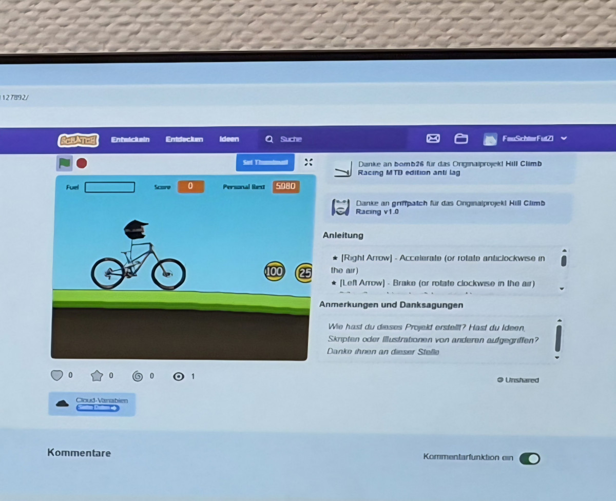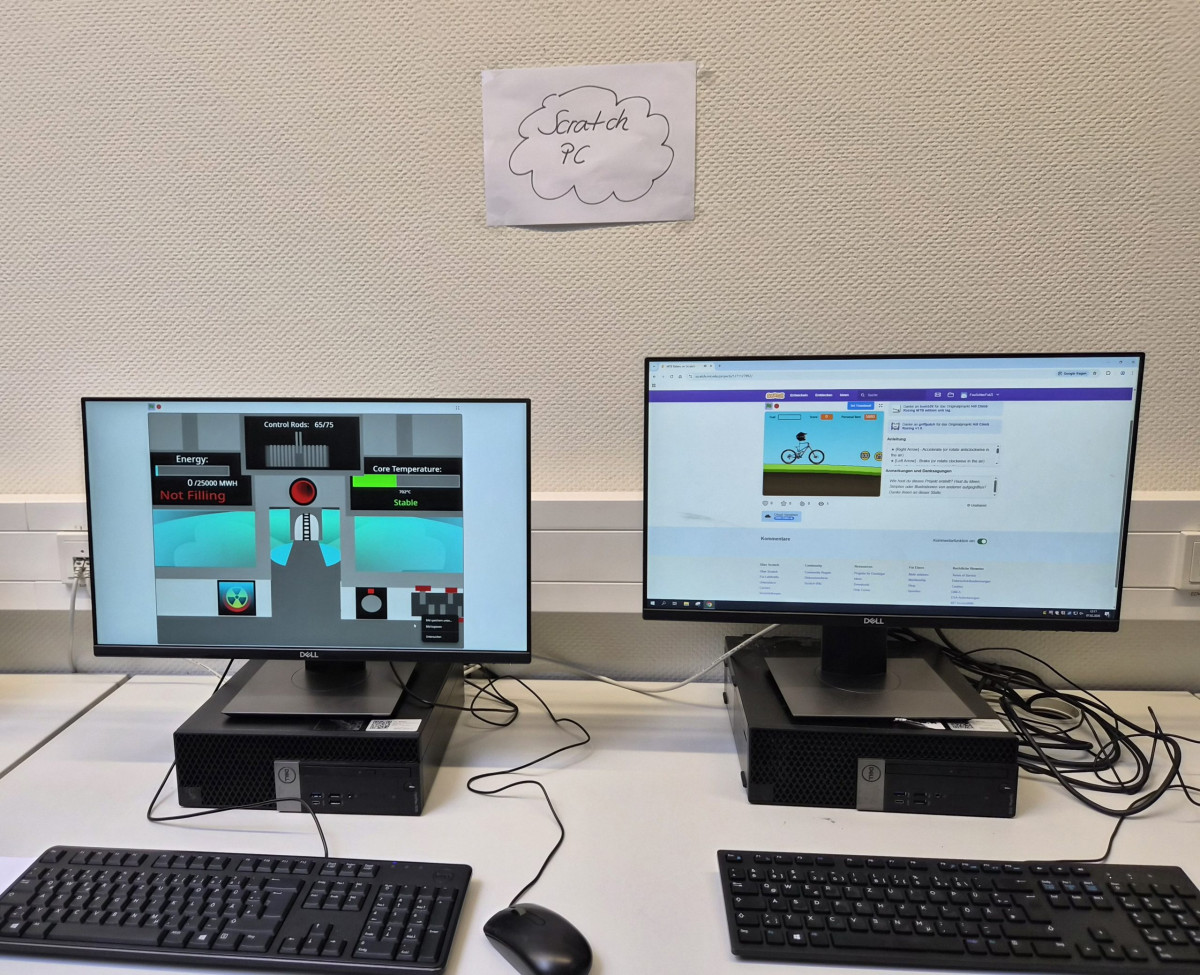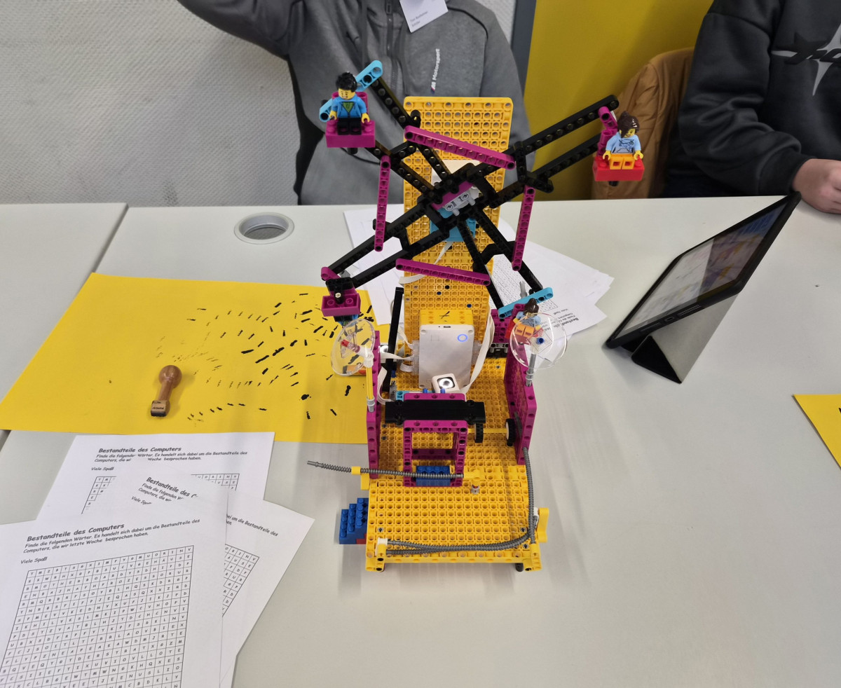 Im Fachbereich Informatik konnte man ein Roboter-Auto bestaunen, das darauf programmiert ist, einen schwarzen Streifen entlangzufahren. Ein Schüler präsentierte sein Karussell, bei dem auf Befehl eine Schranke rauf und runter gehoben wird. Dann ertönt eine Sound-Datei und das Karussell dreht sich (siehe Videobeitrag unten).