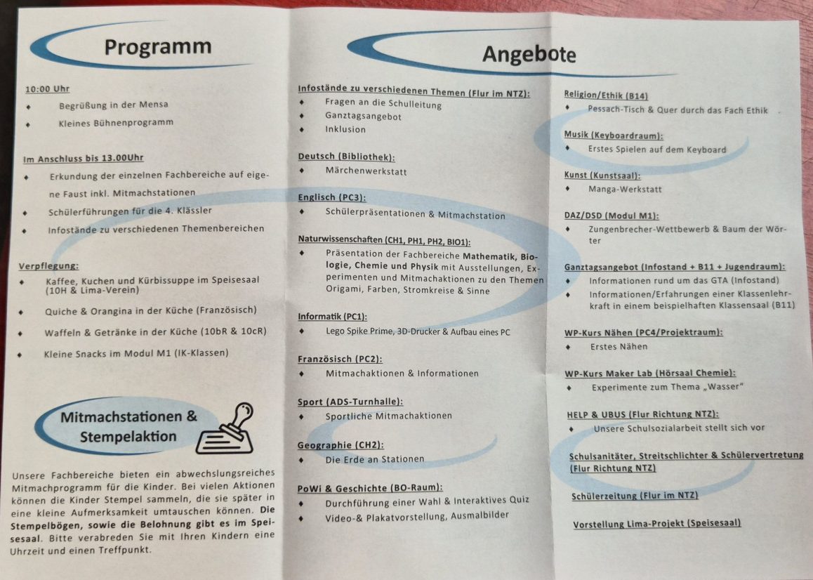 Tag der offenen Tür 7.2.2026 – Kreativ, spannend, informativ, interessant.