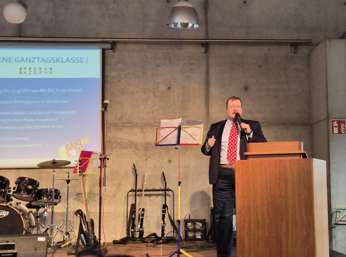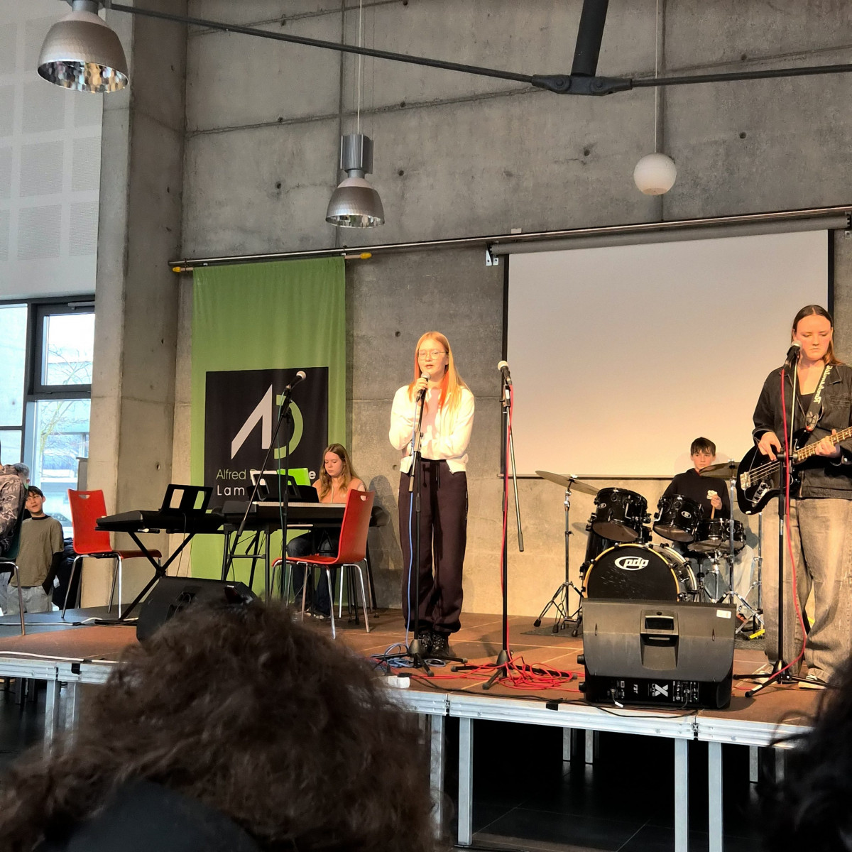 Bei der Begrüßung und Eröffnung des Tags der offenen Tür an der Alfred-Delp-Schule Lampertheim am 7. Februar 2026 durch den Schulleiter Herr Sebastian Kuhn wurde den Gästen ein erster Eindruck vermittelt. Die Schulband zeigte ihr Können sowie die HipHop-AG, die gekonnte Akrobatik mit Tanz fusionierte. Ein kurzes Theaterstück, das Schülerinnen und Schüler mit Frau Helmers einstudiert haben, zeigte eine Alltagssituation in der Schule.