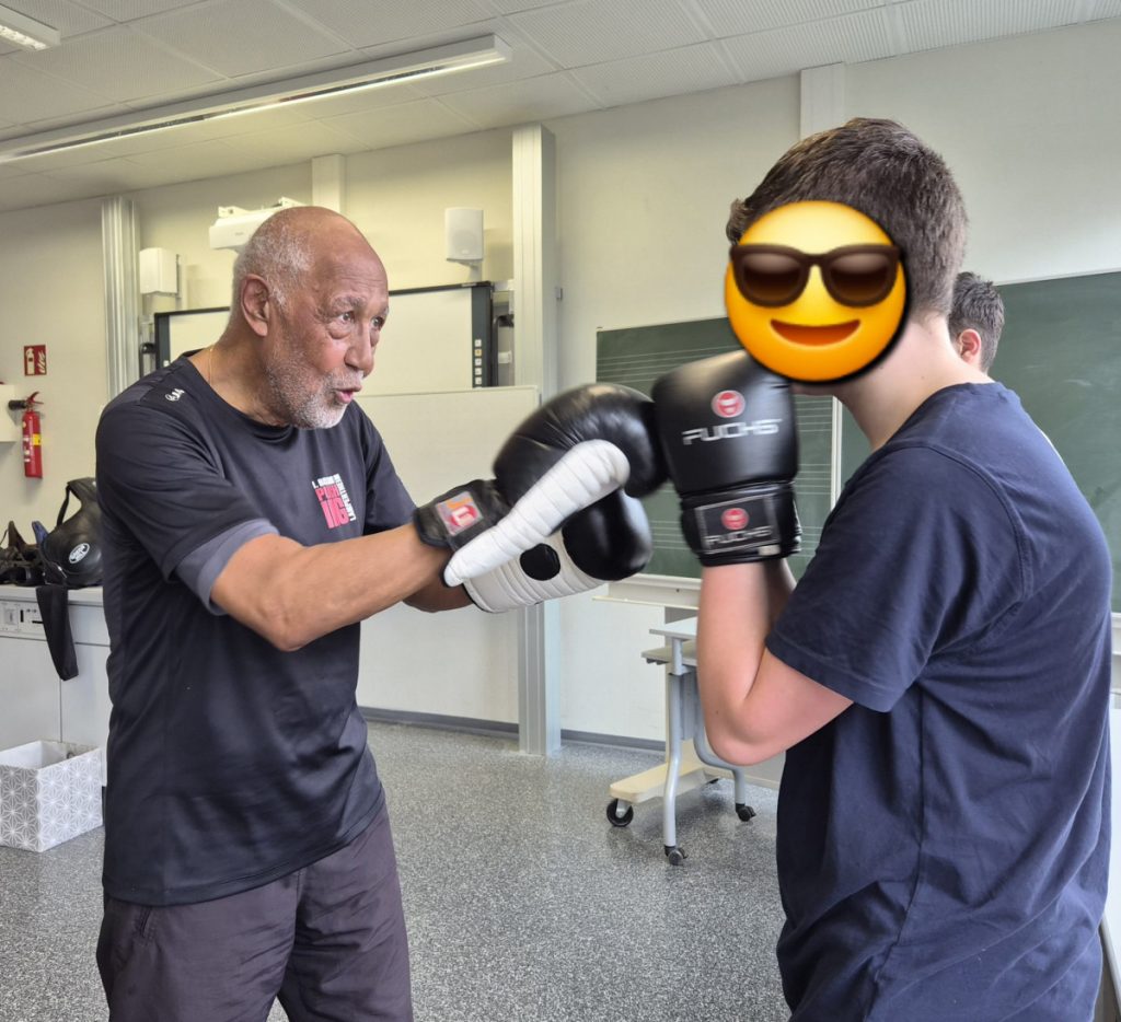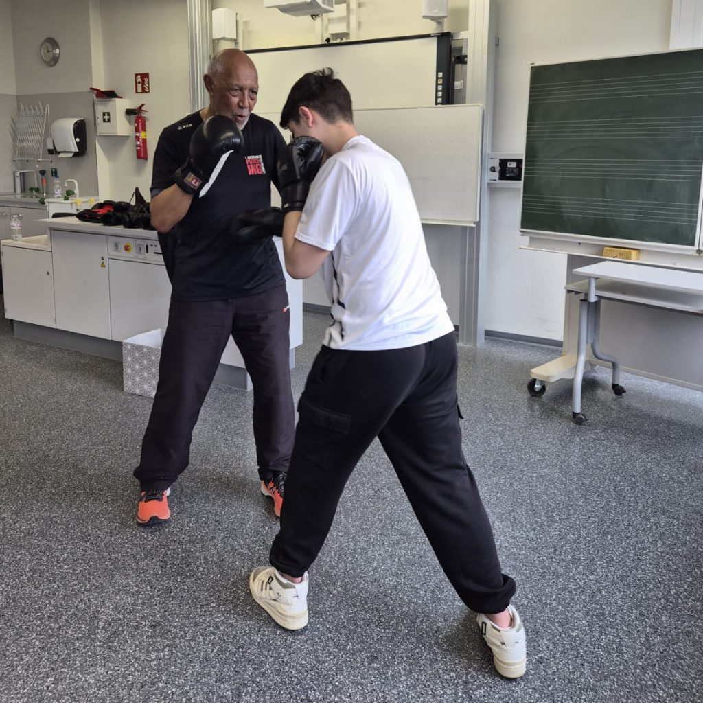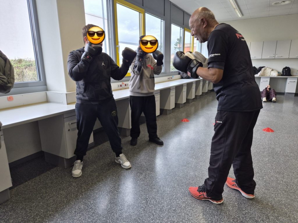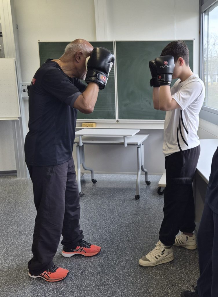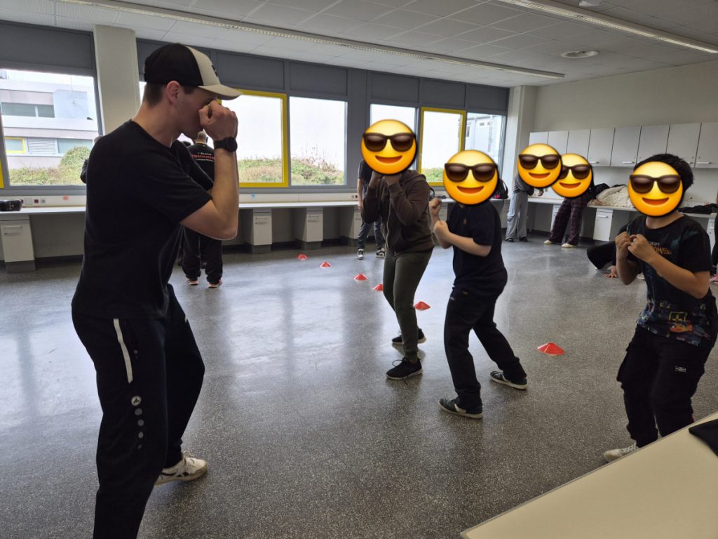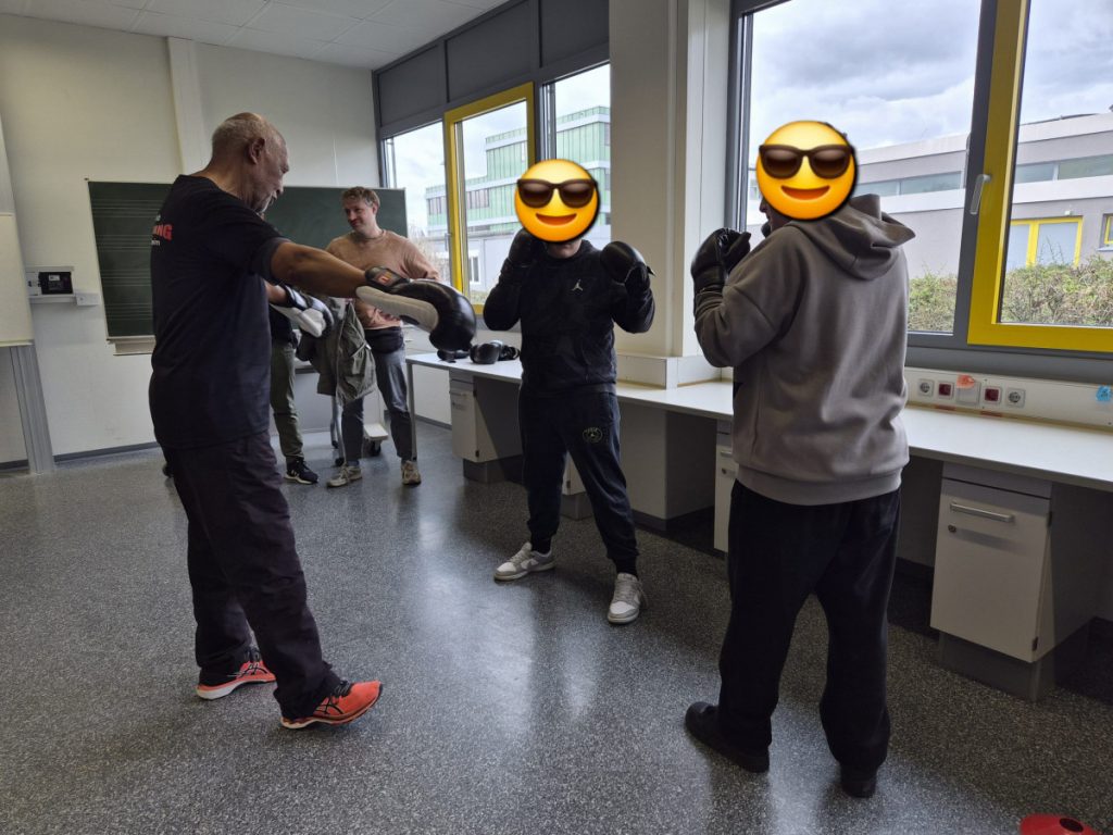 Am Mittwoch, dem 11.3.26 fand an der Alfred-Delp-Schule Lampertheim wieder der YOLO-Day statt. An diesem Gesundheitstag durften die Schülerinnen und Schüler wieder an einem Quiz teilnehmen. Zahlreiche externe Gäste aber auch Lehrkräfte boten Workshops rund um die Gesundheit an. Am YOLO-Day standen wieder Bewegung und gesunde Ernährung an erster Stelle. Für gesunde Smoothies und Snacks sorgte an diesem Vormittag die Abschlussklasse 10dR. Nach zwei oder drei Workshops traf sich die ganze Schulgemeinde auf dem Pausenhof, wo die Gewinnerinnen und Gewinner des Quiz‘ ihre Preise entgegennahmen. Fotos gibt es aktuell viele aus der Klasse IK-C. Die IK-C hatte zwei Workshops auf dem Plan: Body Percussion mit Herrn Kappler auf die Musik von Michael Jackson (Billie Jean), was eine große Herausforderung darstellte aufgrund des schnellen Tempos. Wenn man einmal aus dem Takt kam, konnte man sich schnell wieder einklinken. Des weiteren war die IK-C beim Boxen eingeteilt, das der 1. Boxclub „Punching Lampertheim“ in einem Zirkeltraining durchführte. Die Schülerinnen und Schüler trainierten Koordination, Reflexe und Ausdauer. Das brachte einige zum Schwitzen, aber die Motivation war groß – sie hatten viel Spaß. Zudem wurde das Durchhaltevermögen geübt.