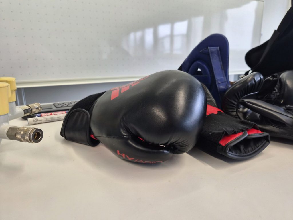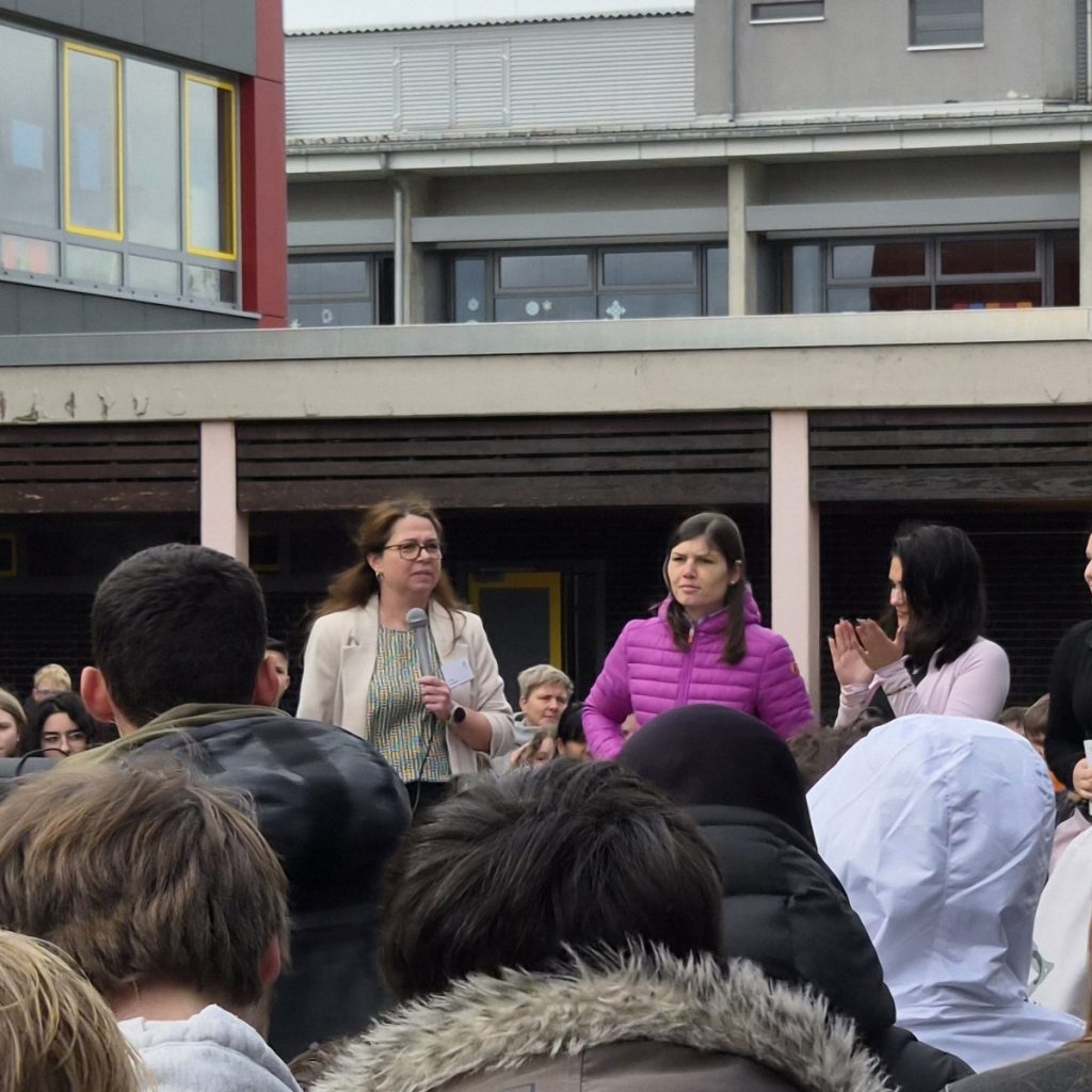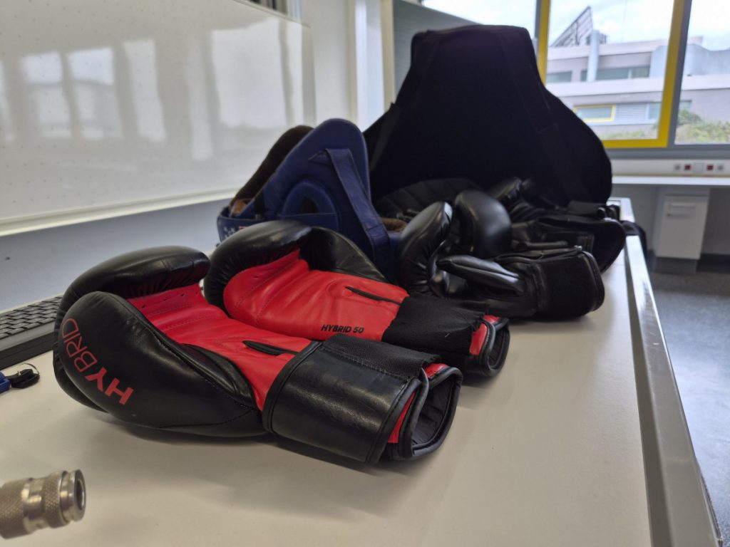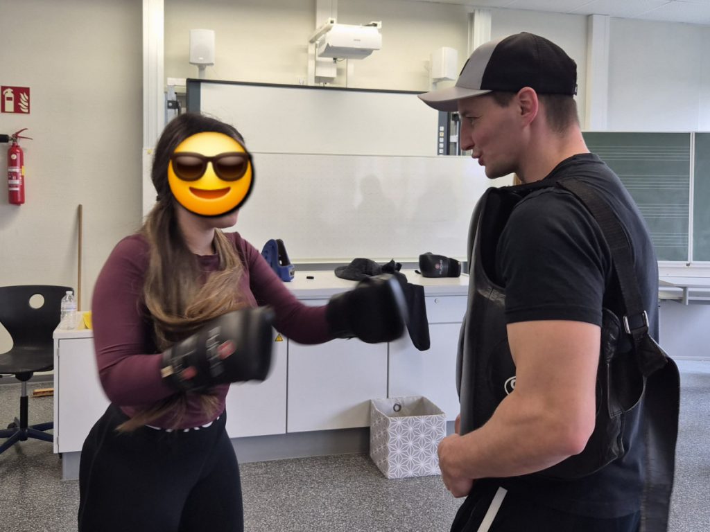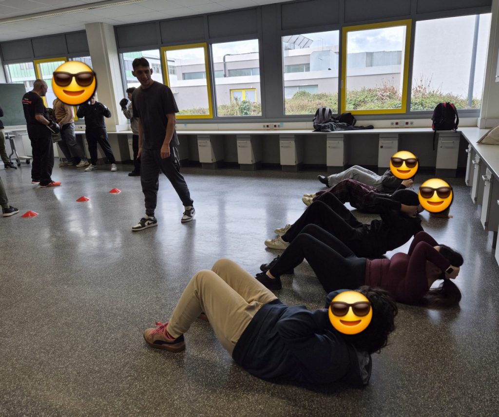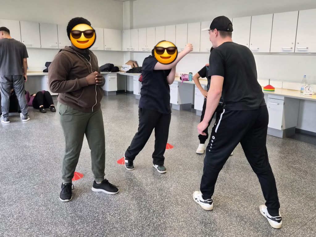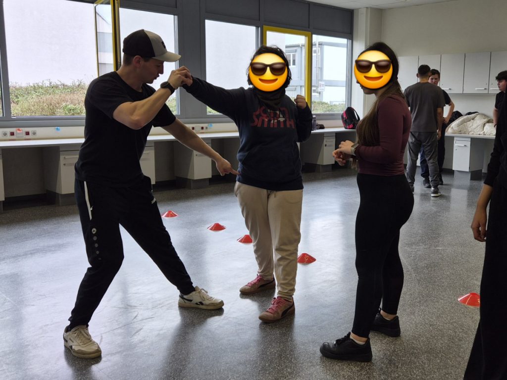 Am Mittwoch, dem 11.3.26 fand an der Alfred-Delp-Schule Lampertheim wieder der YOLO-Day statt. An diesem Gesundheitstag durften die Schülerinnen und Schüler wieder an einem Quiz teilnehmen. Zahlreiche externe Gäste aber auch Lehrkräfte boten Workshops rund um die Gesundheit an. Am YOLO-Day standen wieder Bewegung und gesunde Ernährung an erster Stelle. Für gesunde Smoothies und Snacks sorgte an diesem Vormittag die Abschlussklasse 10dR. Nach zwei oder drei Workshops traf sich die ganze Schulgemeinde auf dem Pausenhof, wo die Gewinnerinnen und Gewinner des Quiz‘ ihre Preise entgegennahmen. Fotos gibt es aktuell viele aus der Klasse IK-C. Die IK-C hatte zwei Workshops auf dem Plan: Body Percussion mit Herrn Kappler auf die Musik von Michael Jackson (Billie Jean), was eine große Herausforderung darstellte aufgrund des schnellen Tempos. Wenn man einmal aus dem Takt kam, konnte man sich schnell wieder einklinken. Des weiteren war die IK-C beim Boxen eingeteilt, das der 1. Boxclub „Punching Lampertheim“ in einem Zirkeltraining durchführte. Die Schülerinnen und Schüler trainierten Koordination, Reflexe und Ausdauer. Das brachte einige zum Schwitzen, aber die Motivation war groß – sie hatten viel Spaß. Zudem wurde das Durchhaltevermögen geübt.
